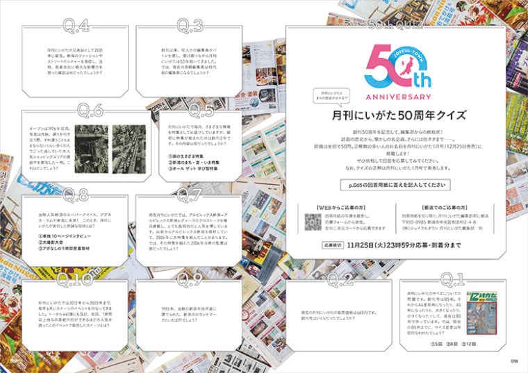 体験型の読者プレゼントや、新潟のまちや月刊にいがたに関する全50問のクイズにも注目です。